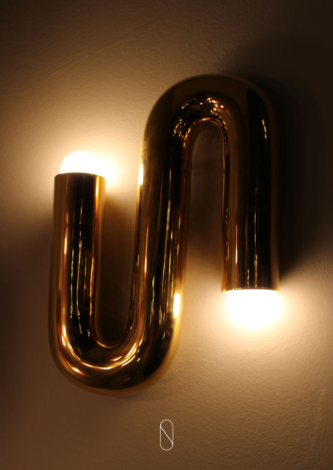 Wall lamp in ceramic tube with two lights, it is possible to create a whole modular and bright wall. led lamp size: h34 x 15 x 14 cm